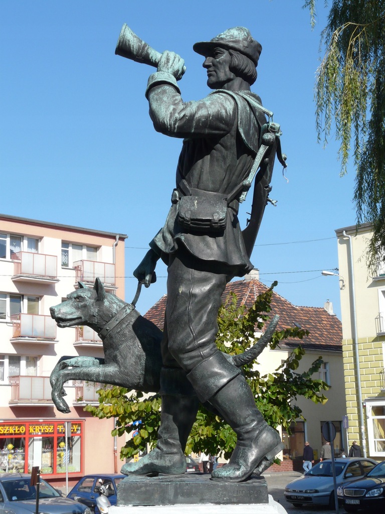 Pomnik Myśliwca w Strzelcach Opolskich to jeden z najbardziej rozpoznawalnych symboli miasta, znajdujący się w samym jego sercu – na rynku, tuż przed ratuszem. Monument ten, przedstawiający postać myśliwego w stroju łowieckim, powstał w 1929 roku i od początku stanowił ozdobę fontanny miejskiej. Figura została wykonana z brązu w Królewskiej Odlewni w Gliwicach, a jej autor do dziś pozostaje nieznany. Myśliwy, trzymający w dłoni róg sygnałowy, nawiązuje do tradycji i legend o dawnych strzelcach książęcych, którzy mieli dać początek nazwie miasta. Pomnik ten nie tylko odwołuje się do historii, ale też symbolizuje odwagę, czujność i przywiązanie do natury – cechy utożsamiane z mieszkańcami regionu. Wokół postumentu znajduje się kamienna misa fontanny, która latem stanowi malowniczy akcent rynku i chętnie odwiedzane miejsce spotkań. Pomnik Myśliwca przeszedł kilka renowacji, dzięki czemu zachował swój dawny blask i nadal pełni ważną funkcję w przestrzeni miejskiej. Dziś jest nie tylko zabytkiem sztuki użytkowej, ale także jednym z najważniejszych punktów orientacyjnych Strzelec Opolskich, przyciągającym zarówno mieszkańców, jak i turystów.